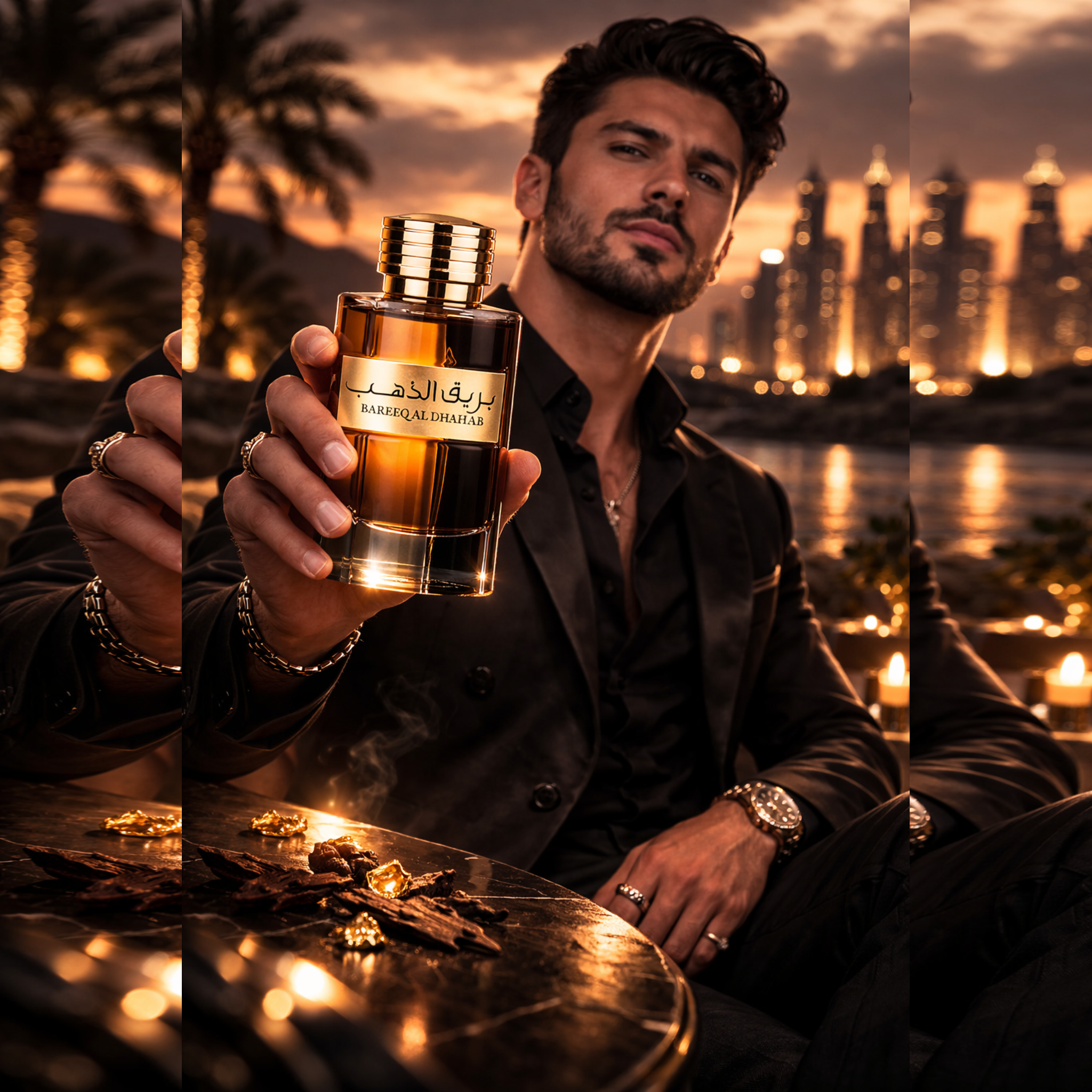 Perfeito para uso noturno e ocasiões especiais, o Bareeq Al Dhahab combina luxo e personalidade em um frasco imponente que reflete toda a riqueza da fragrância.